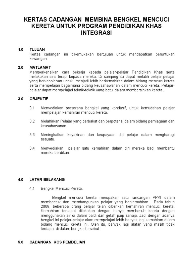 Contoh Kertas Kerja Untuk Buka Kedai Cuci Kereta Pdf